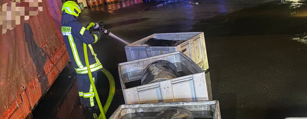Dank der Hilfe von zwei Mitarbeitern der Firma, konnten wir das Brandgut mithilfe von einem Gabelstapler und einem Radlader von den nicht brennenden Altbatterien trennen und anschließend ablöschen. Um die Altbatterien gegen das wiederentzünden zu sichern, wurden diese in großen Kunststoffbehälter mit Wasser gelagert.